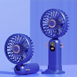Portable Mini Desktop Fan with LED Night Light, 5-Speed Digital Display, Quiet Operation, USB Rechargeable, Long Battery Life for Home, Office, Travel, and Camping